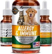 Alergia de mascotas y apoyo inmunológico – Fabricado en Estados Unidos – Alivio de alergias para gatos y perros – 100% natural – Cardo de leche y cúrcuma – El mejor tratamiento para el sistema inmunológico para perros y gatos – Vitamina C para mascotas –